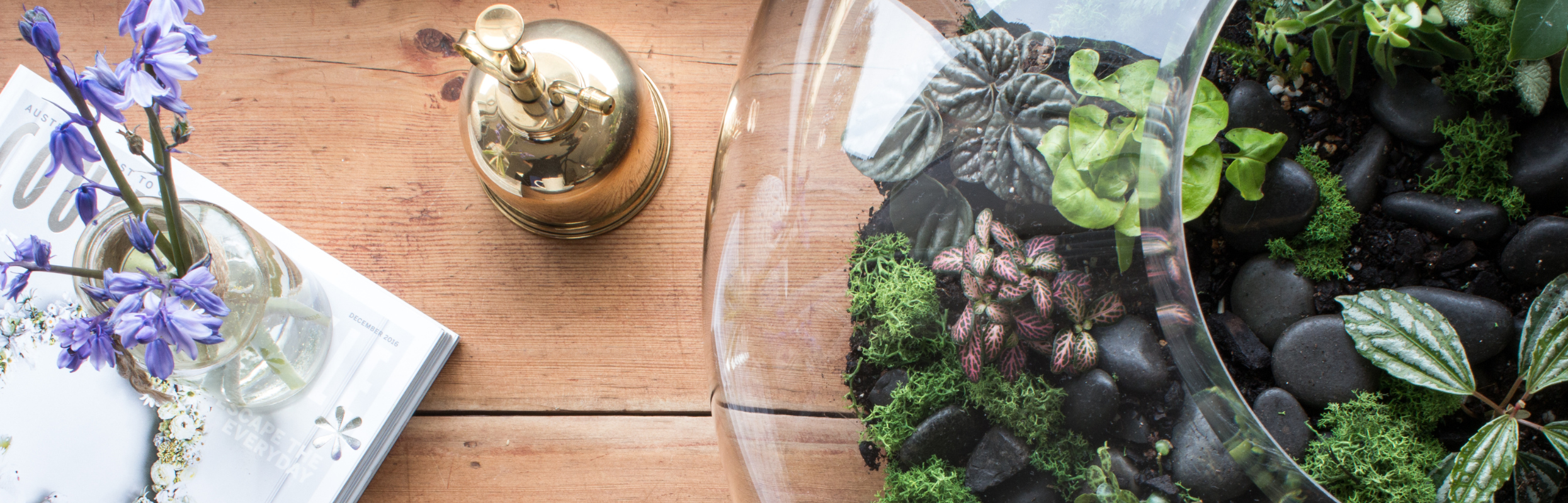 Generally, closed terrariums should not require regular watering. In fact they can often go for months without supplementary watering! We recommend around 4-8 weeks for our terrariums with cork lids (cork tends to breathe and soak up some moisture). For terrariums with solid lids like glass it could be 2-6 months before it needs a little extra water. Remember, if you think you’ve over-watered, open your terrarium to let it breathe and allow for water evaporation.