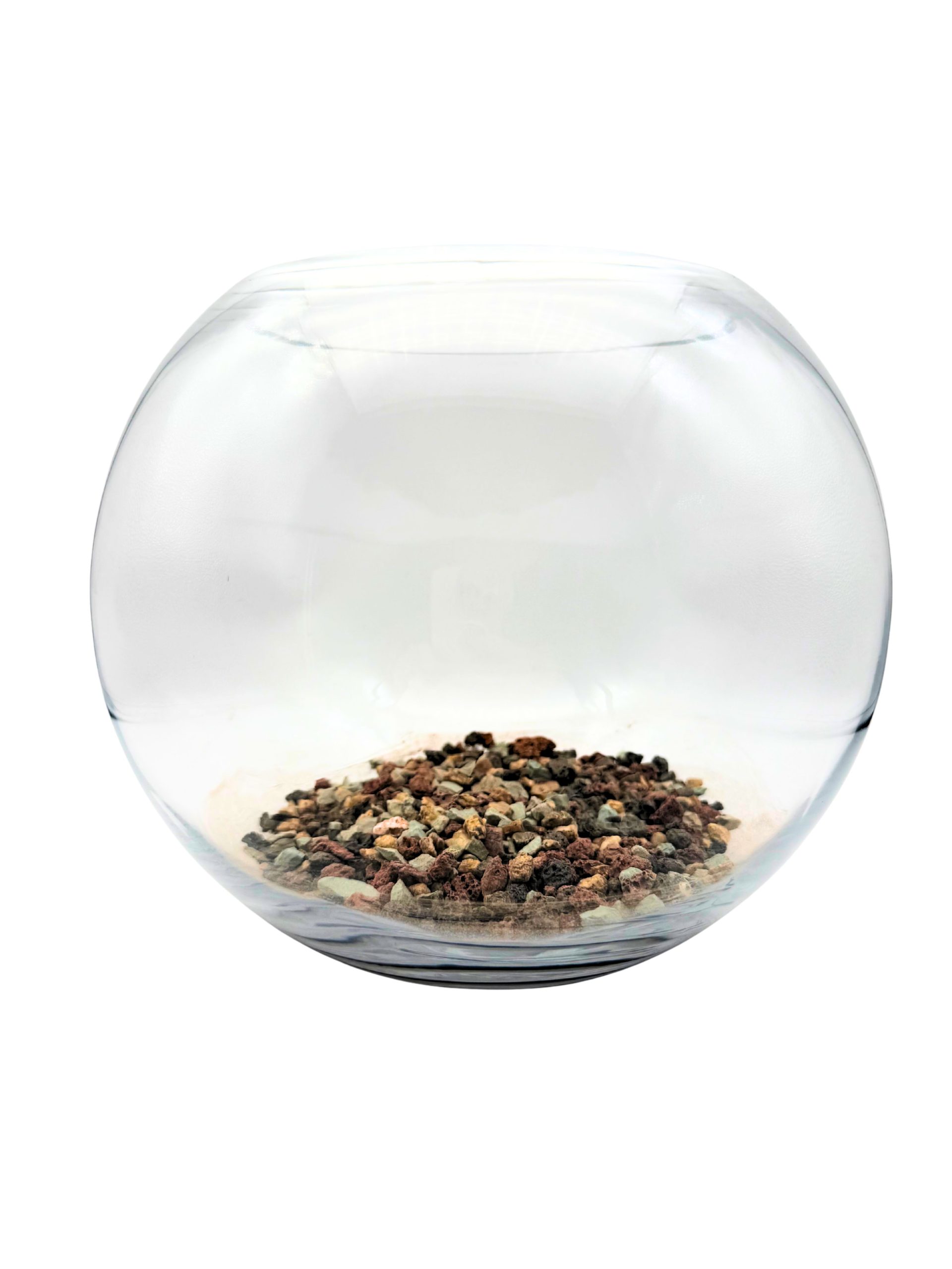 This 180g bag contains enough clay pebbles for to create a base substrate in 2 x 20cm diameter fishbowl terrariums or at least one 25cm diameter fishbowl. The terrarium shown here is 25cm diameter.